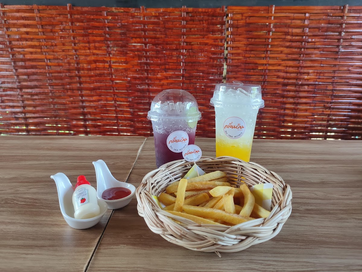 As you step into กลิ่นดิน, the inviting ambiance welcomes you with open arms, offering a serene reprieve from daily routines. The café is not just another dining spot; it's a tranquil oasis enhanced by delightful sounds of nature, including the soft quacks of ducks and the gentle rustle of leaves.